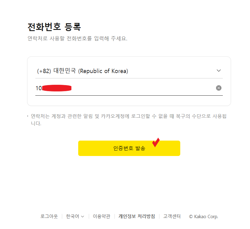 입력하신 번호의 핸드폰으로 인증 문자가 옵니다