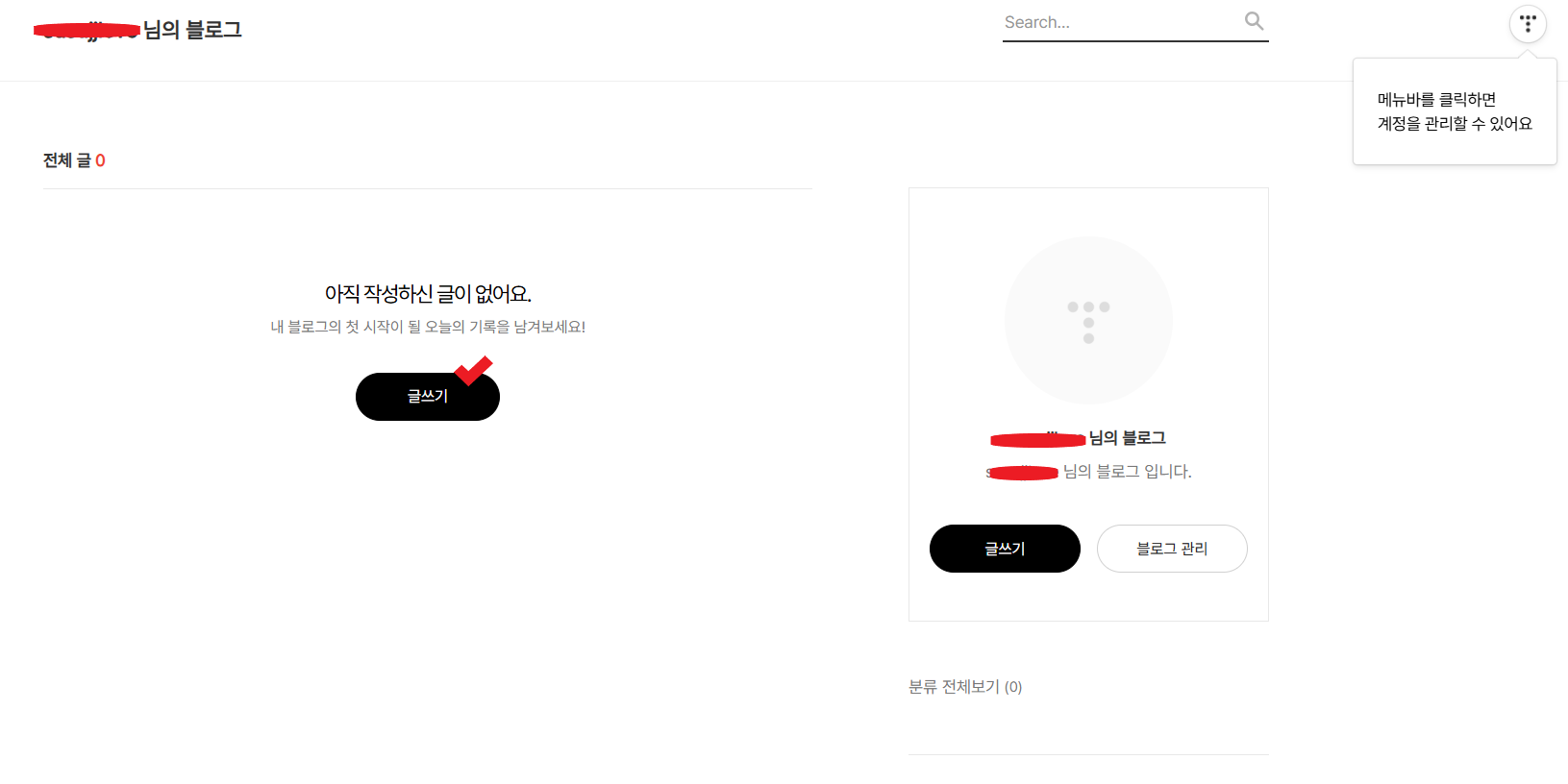 이제 그 쓰기를 누르시면 이제 모든 정보를 나만의 스타일로 나만의 세상을 만드실 준비가 되신 거예요 ^^